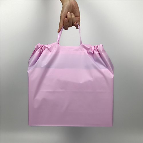SES.CO Deluxe Frosted Cute Pink Plastic Drawstring Merchandise Bags Gift Bags Customer Shopping Bags for Boutique Retail and Mall