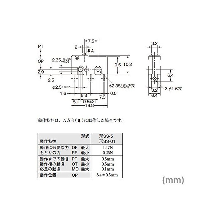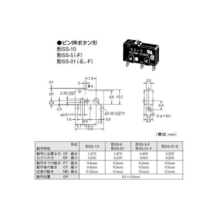 원본상품명: オムロン(OMRON) SS-5 超小形基本スイッチ(高耐久性) (ピン押ボタン形) はんだづけ端子 1cタイプ(投形) NN