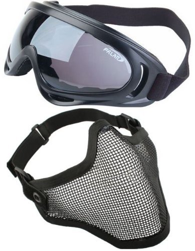 -. Title : 2 in 1 Protection Steel Mesh Face Mask with X400 UV Safety Goggles Airsoft Paintball, Black