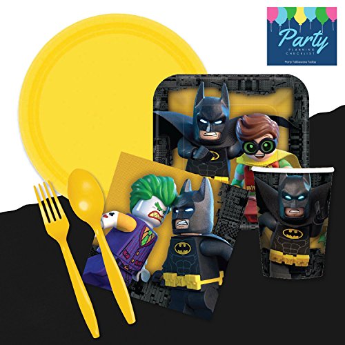 -. Feature : Lego Batman themed tableware bundle includes the following: / (16) 7" snack/cake plates, (16) 9oz paper cups, (16) lunch napkins / (16) 9" solid yellow dinner/pizza plates, (16) each yellow forks, spoons, (1) black table cover / You'll also receive a party planning checklist PDF to help get your party organized so you can enjoy the party too!