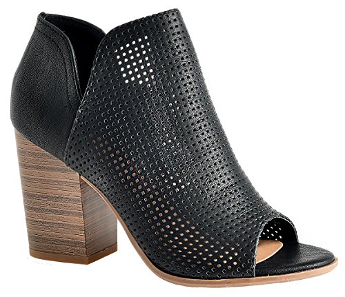 -. Title : LUSTHAVE Women's Crystal Open Peep Toe Perforated Chunky Stacked Block Heel Side Zipper Closure Sandals Cut Out Heeled Bootie By