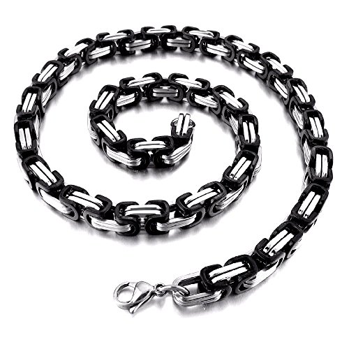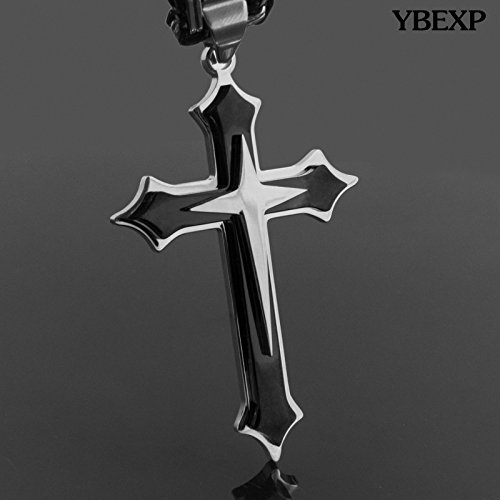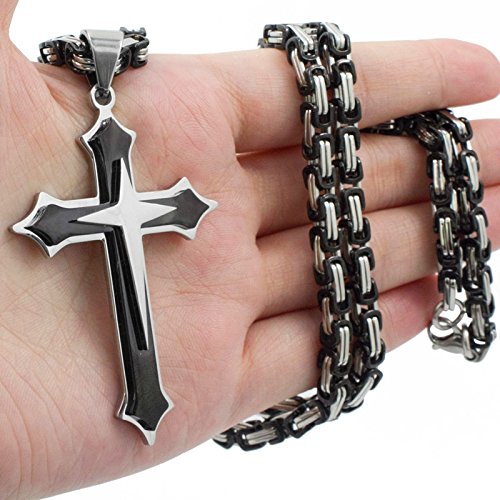 Stainless Steel Mens Cross Necklace Pendant for Boys Byzantine Chain Black 5mm 22-30 Inch (Pendant with 30" Chain)