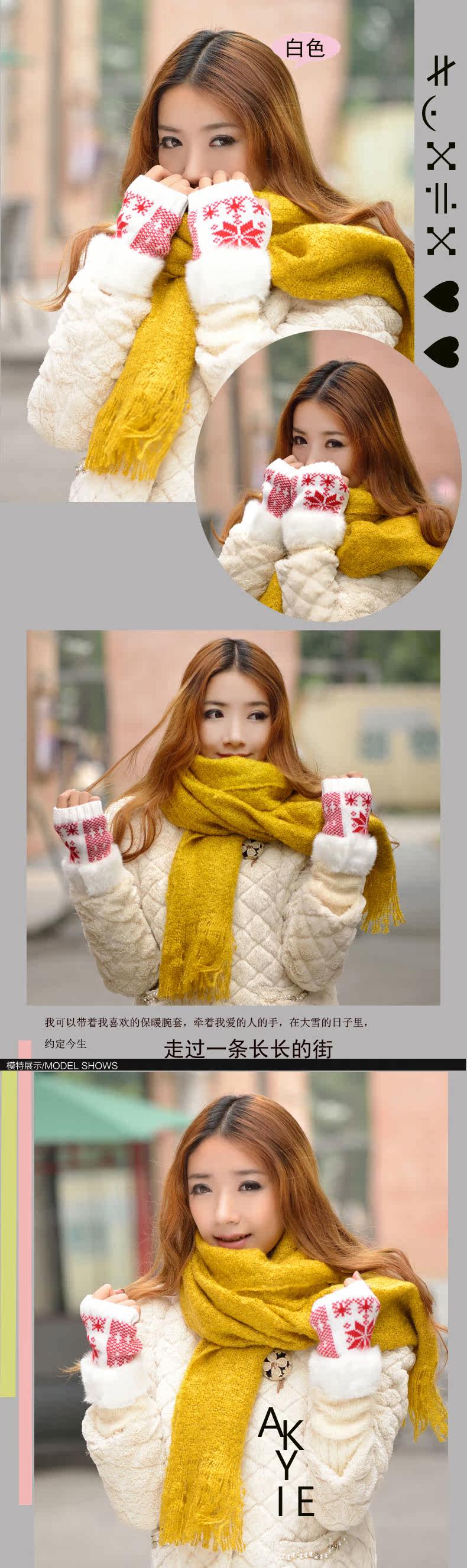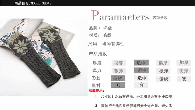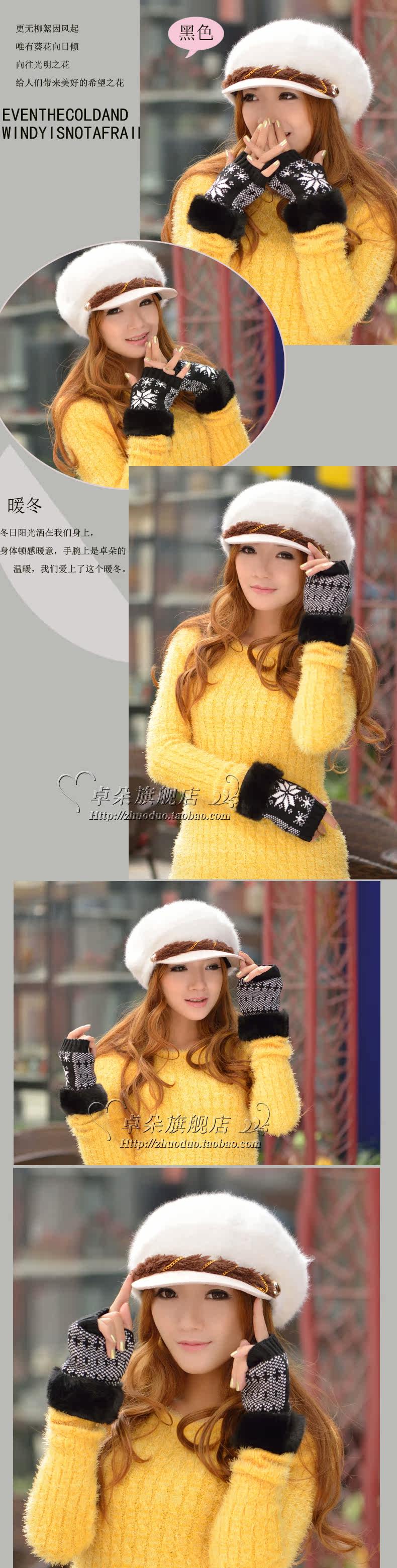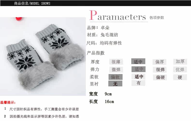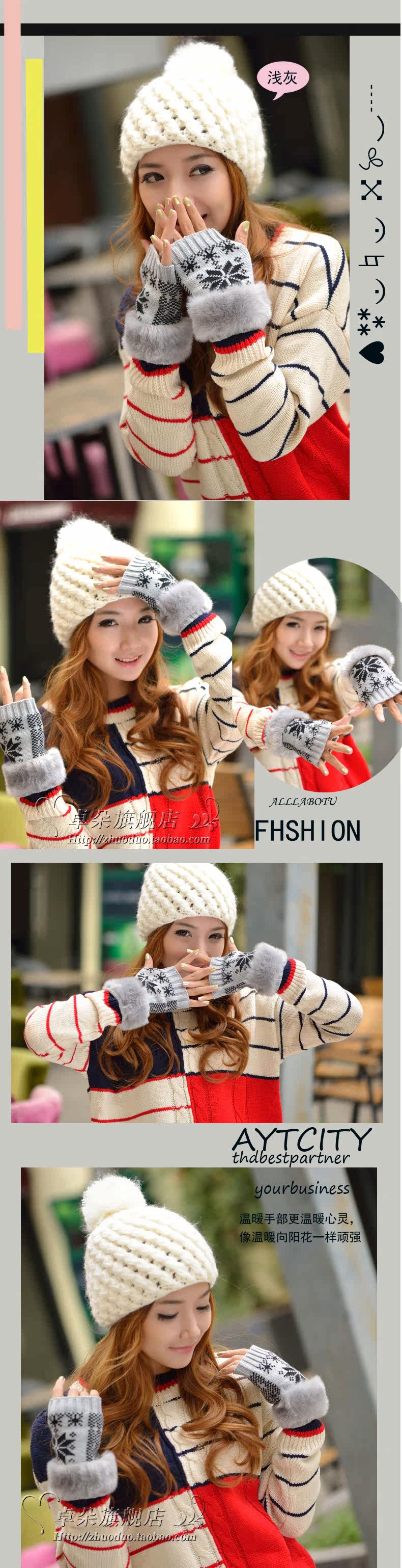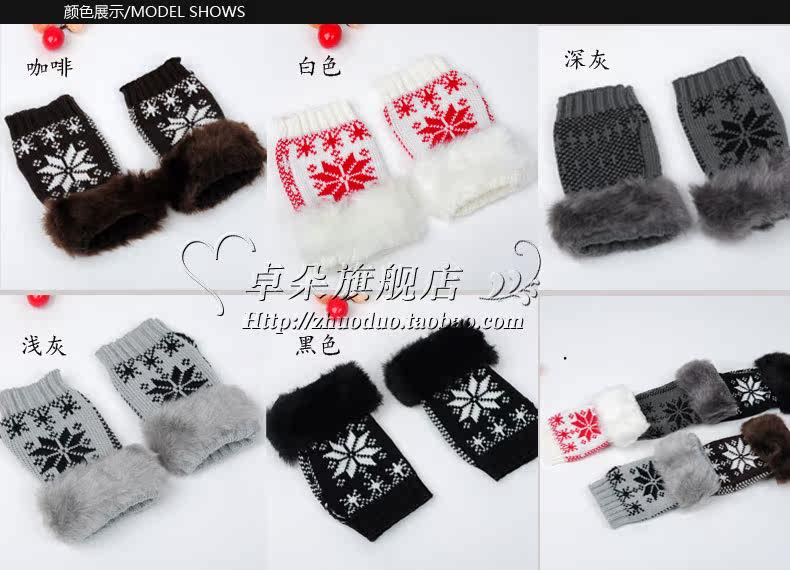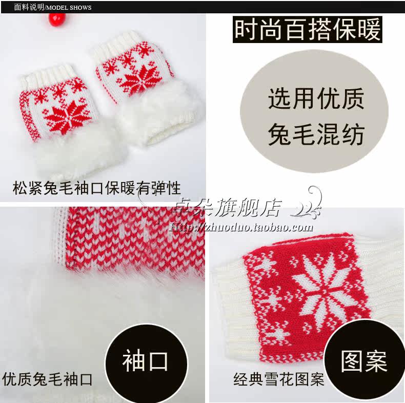 卓朵雪花手套 女 冬 可爱女士腕套 韩版露指保暖仿兔毛半指手套