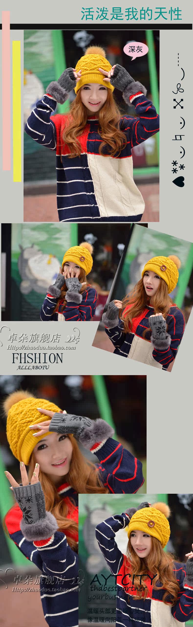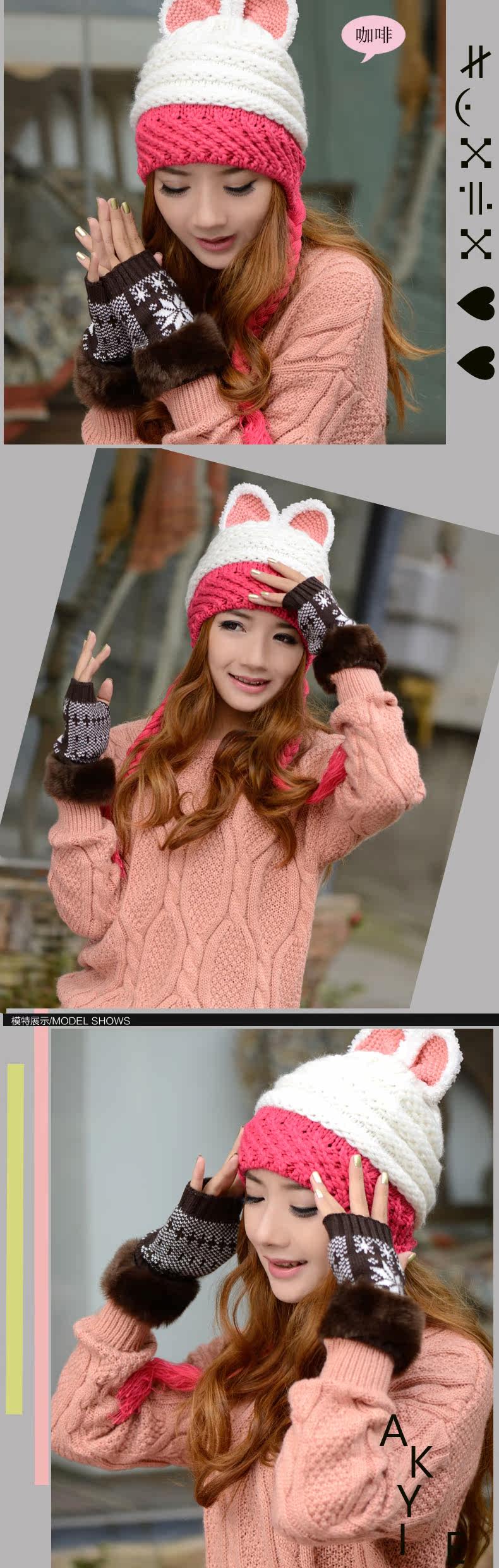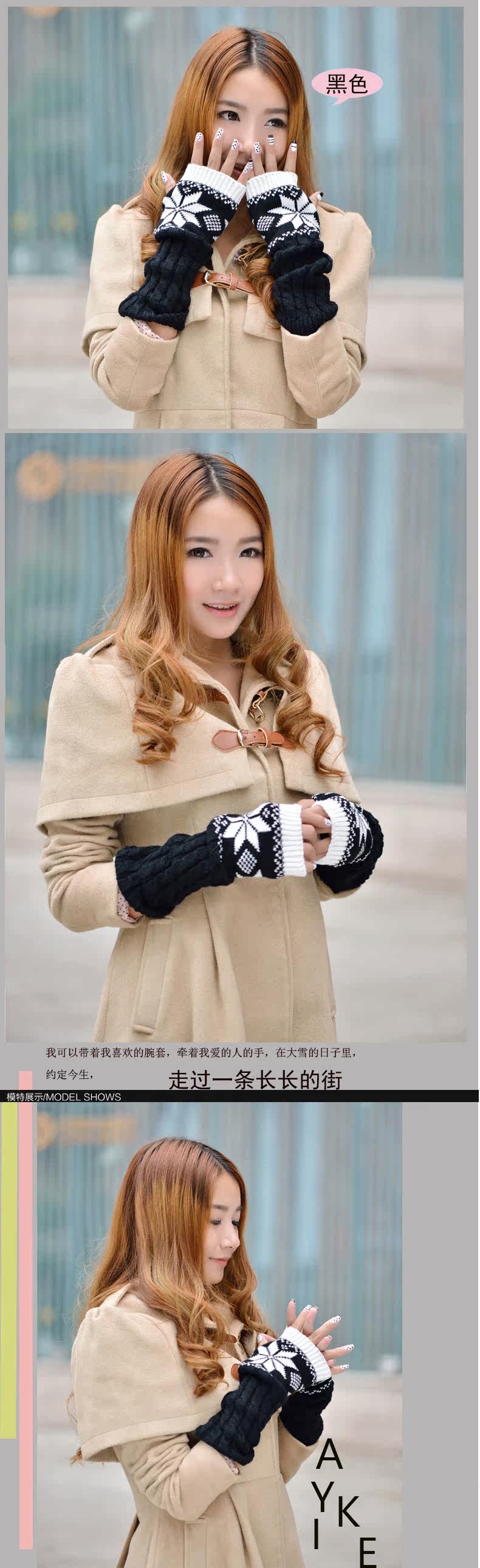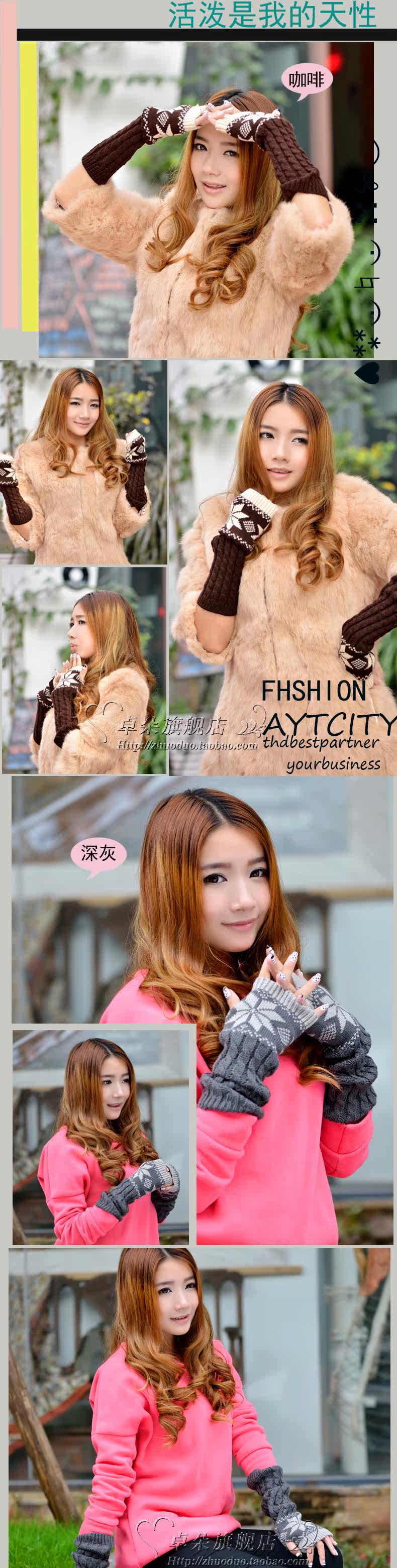 卓朵雪花手套 女 冬 可爱女士腕套 韩版露指保暖仿兔毛半指手套