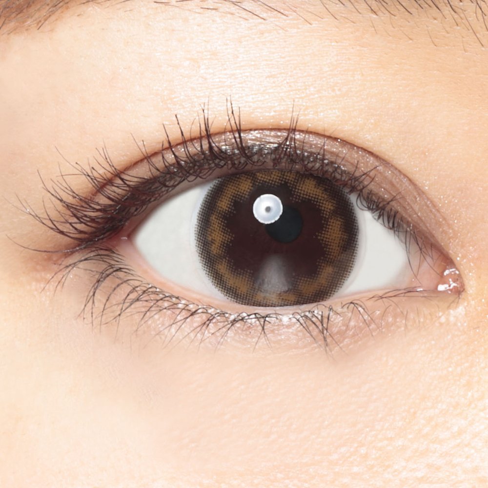 The contrast of a slightly black outer border and inner brown brings a sense of transparency to the pupil and directs a natural and healthy woman.