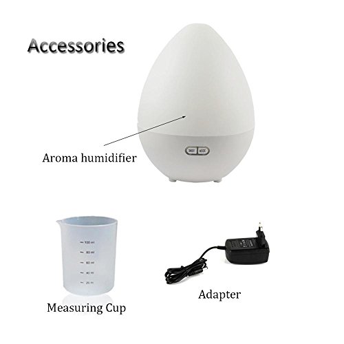 Note This humidifier cannot be used in car. No water inside water tank, the spray will be cut off and the red LED indicator will be light on. For long time not use, please power off and clean water tank and dry it. Recommend to use pure water, to be ensure the essential oils or perfumes will not corrosion the tank surface when you want to add it inside water tank usually, 3 to 8 drops for each time. Clean the water tank at least once a week, do not touch the ultrasonic vibration plate with any hard metal.