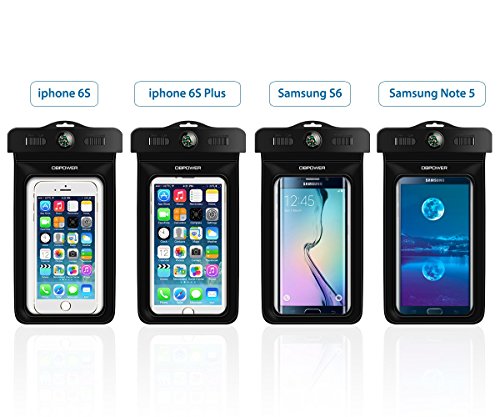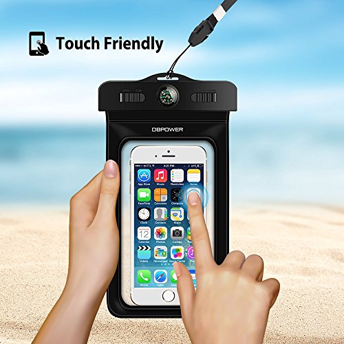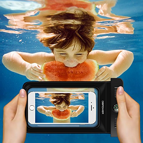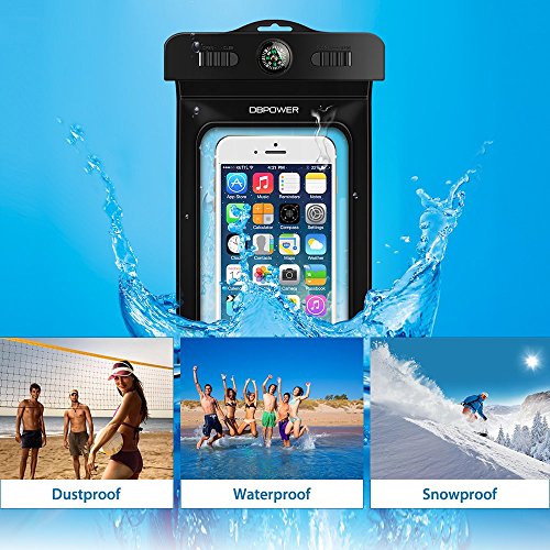 DBPOWER Universal Waterproof Case with Armband and Compass Colorful Underwater Dry Bag for iPhone 6/6s/6plus/6splus, Samsung, Sony up to 6", Waterproof IPX8 Certified to 100 Feet (Black )