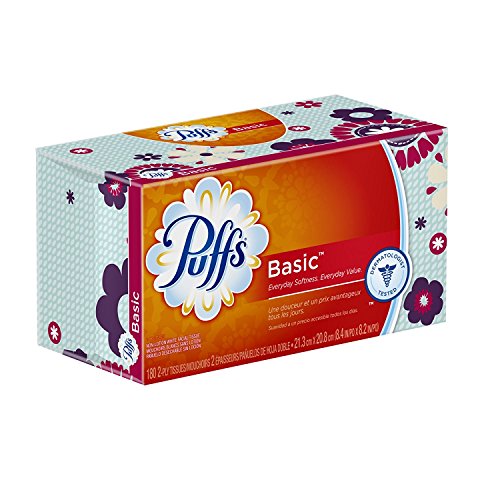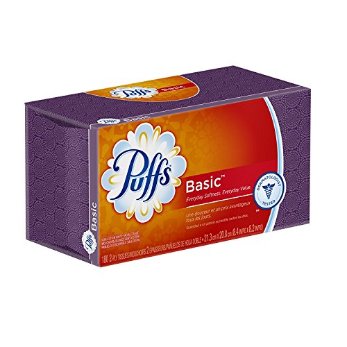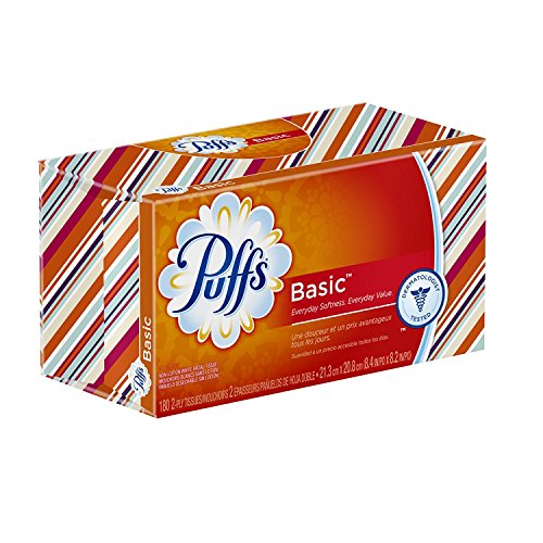 Puffs Basic Facial Tissues; 1 Family Box, 180 Tissues per Box (Pack of 4)