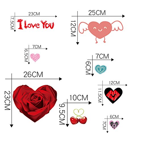 ❥ Quantity - 140 valentine day themed window stickers in 4 sheets. This wall decor are approximately 17.3" by 11.8".