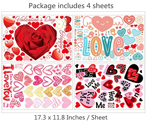 140PCS Valentines Day Window Clings Hearts Wall Decals Stickers Decorations Party Supplies For Home (4 Sheets)