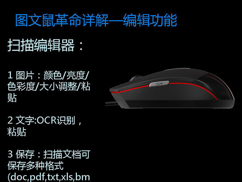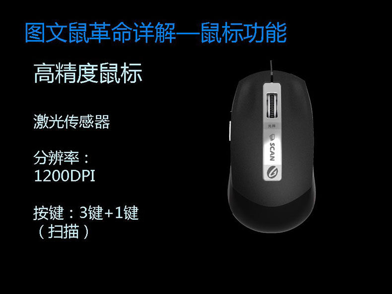 1、操作简单便利:轻按鼠标左侧的扫描按钮,移动鼠标到需扫描的文档就能完成扫描录入。