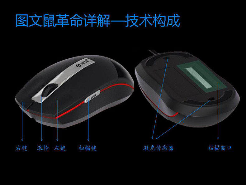 光阵鼠标扫描仪——"图文鼠”最独特的扫描功能,实现随时随地随意扫描。