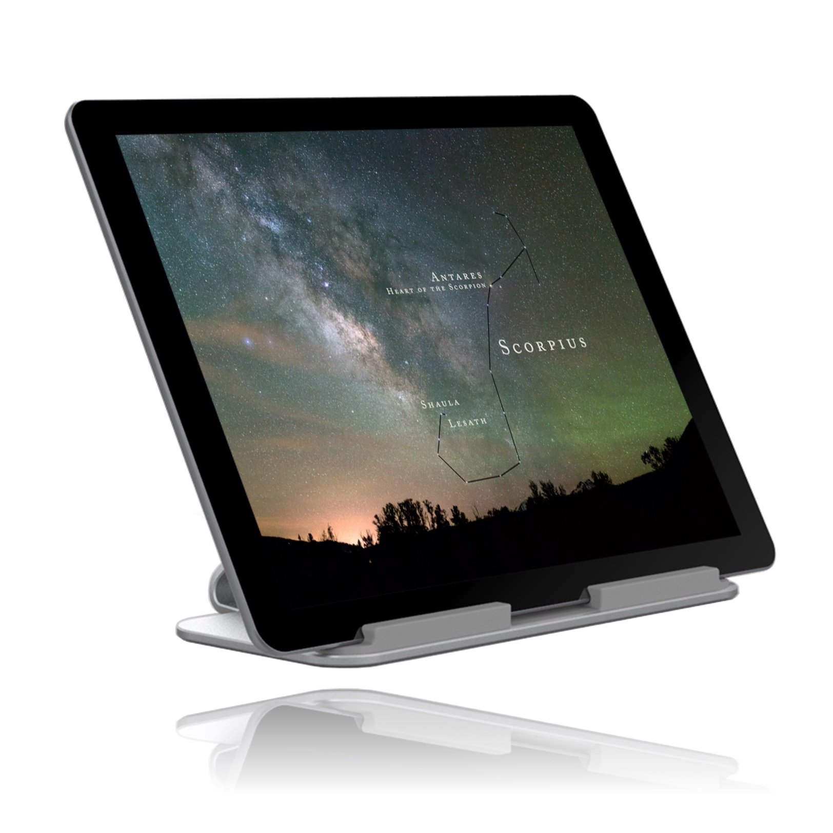 It is a simple stand that just puts the tablet, it makes it fashionable and refreshing.