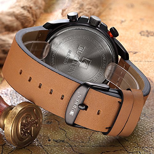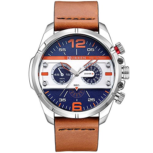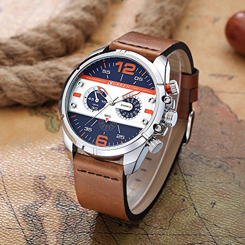 -. Title : CURREN Original Brand Men's Sports Waterproof Leather Strap Wrist Watch 8259 Silver Brown Blue