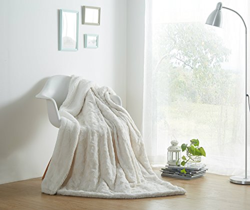 Elegant and luxurious solid white faux fur throw blanket with a lovely soft texture on one side and extremely warm and comforting sherpa back side.
