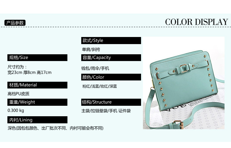 Bag Dimensions: Width 23CM, thickness 8CM, height 19CM, diagonal strap is 120CM, can be removed!