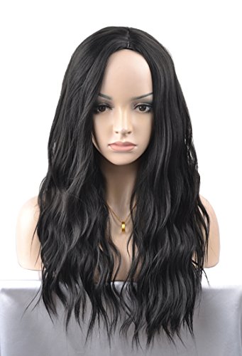 MeriCino Natural Wavy Black Wigs Synthetic Long Middle Parted Curly Wig for Women