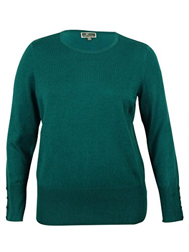 This feminine sweater features button details on the cuffs, a round neck, and pullover style.