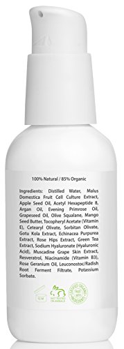 -. Feature : 6 powerful anti-aging ingredients in one to improve skin elasticity, texture, and tone / Nourishing vitamins and antioxidants repair skin on a cellular level for a smooth, radiant complexion / Lightweight, non-greasy moisturizer sinks right in, leaving skin silky soft and smooth / Natural and organic ingredients; no parabens, dyes or fragrances; vegan & cruelty-free; made in USA / Manufacturer's Guarantee: 100% money back guarantee, no questions asked, and no returns necessary
