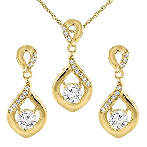 -. Title : 14K Yellow Gold 0.45 cttw Genuine Diamond Earrings and Pendant Set Round 3.5 mm