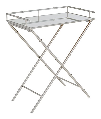 Product Description San merino folding serving tray with mirrored top and nickel brush plate frame; attractive mirrored top nickel brush frame easy fold fully assembled intended for residential use only 0