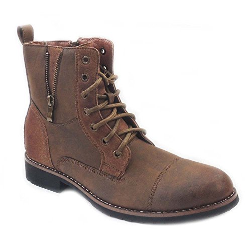-. Title : NEW MENS HIGH ANKLE BOOTS MILITARY COMBAT STYLE LACE UP ZIPPERED SHOES BROWN606
