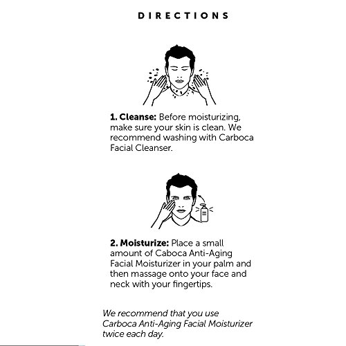 -. Feature : ✅ 100% RISK FREE MONEY BACK GUARANTEE ✅ - Carboca products are manufactured in the USA and meet our high standard for quality. Carboca products are All-Natural, Fragrance and Perfume Free, and never tested on animals. Buy Carboca Activated Charcoal Anti-Aging Face Lotion with confidence today! / ✅ REPAIRING MOISTURIZER WITH ACTIVATED CHARCOAL ✅ - Activated Charcoal absorbs harmful oils and bacteria that lives in your skin, and will pull them off when washed away. Sunflower Oil, Rice Bran Oil, Avocado Oil, and Coconut Oil all contain vitamins, minerals, proteins, and essential oils to help protect your skin's natural oils and hydrate and revitalize your skin. / ✅ ALL NATURAL INGREDIENTS ✅ - Activated charcoal can absorb thousands of times its own mass in toxins, Green Tea Extract helps reduce signs of aging, and Coconut Oil and Aloe Vera work together to form a healthy, natural barrier on your skin and protect your skin's natural oils. Our All Natural Face Lotion is the best Natural Anti-Aging face lotion! / ✅ SPECIALLY FORMULATED FOR MEN ✅ - Carboca is crafted to address the unique needs and chemistry of men's skin. We use strong, trusted ingredients, and red, earthy scents. Our Anti-Aging Facial Lotion is also easy to use to help save time and avoid hassle. / ✅ REPAIR AND REVITALIZE DAILY ✅ - Argan Oil is rich in antioxidants and vitamin E, and is a highly effective repairing agent, helping to minimize the appearance of fine lines. It also benefits your skin texture, helping to maintain a youthful, healthy appearance. Use twice daily after washing for the best results!