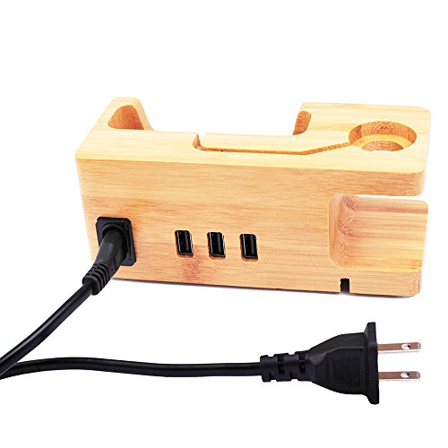 -. Title : ZeroElec 3 Ports USB 2.0 Hub Apple Watch organizer stand, 2 in 1 Desktop Bamboo Wood Charging Station Holder for iwatch 38mm 42mm & iphone & Other Smartphone