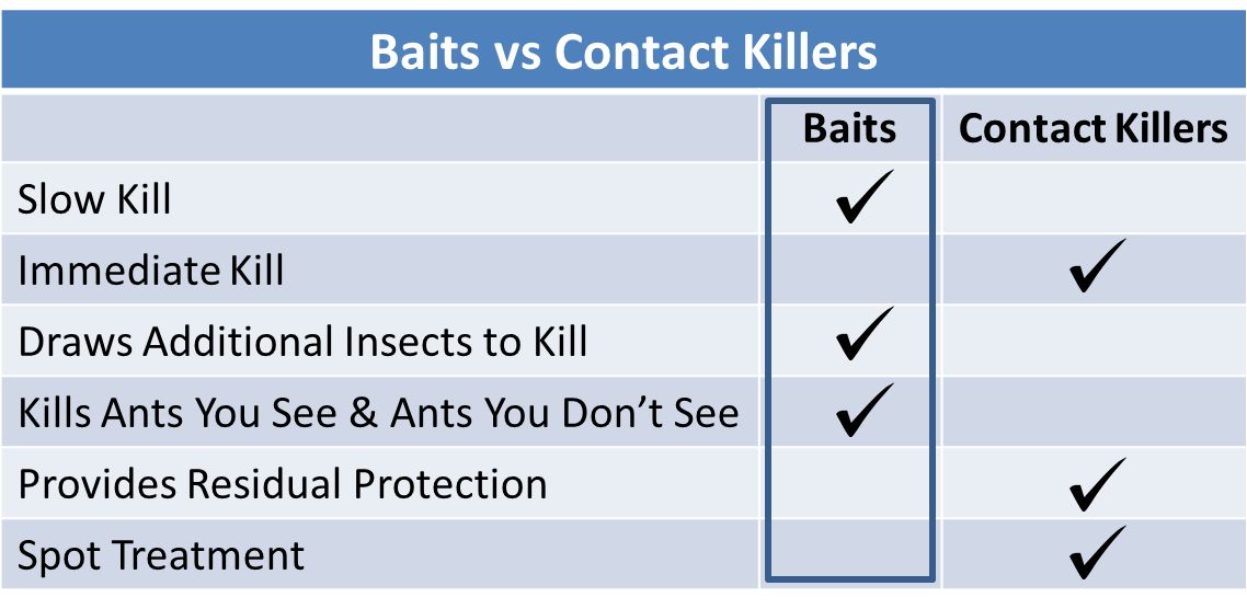 While the active ingredient in TERRO® Outdoor Liquid Ant Baits will ultimately kill the worker ant, it interferes with the ant's digestive system and works slowly enough that the worker has time to get back and share the ant bait with the rest of the colony. This slow kill is needed to allow time for the foraging ants to make several trips to the bait and deliver enough bait to the rest of the colony. Baiting enables you to get rid of both the ants you see and the ants you don’t. Complete control may take up to two weeks.