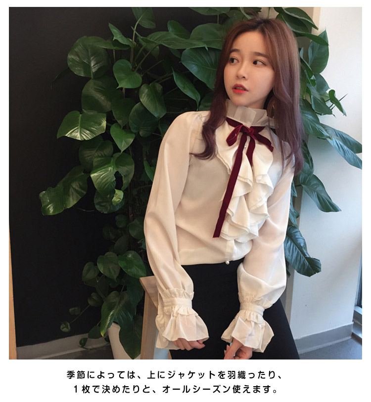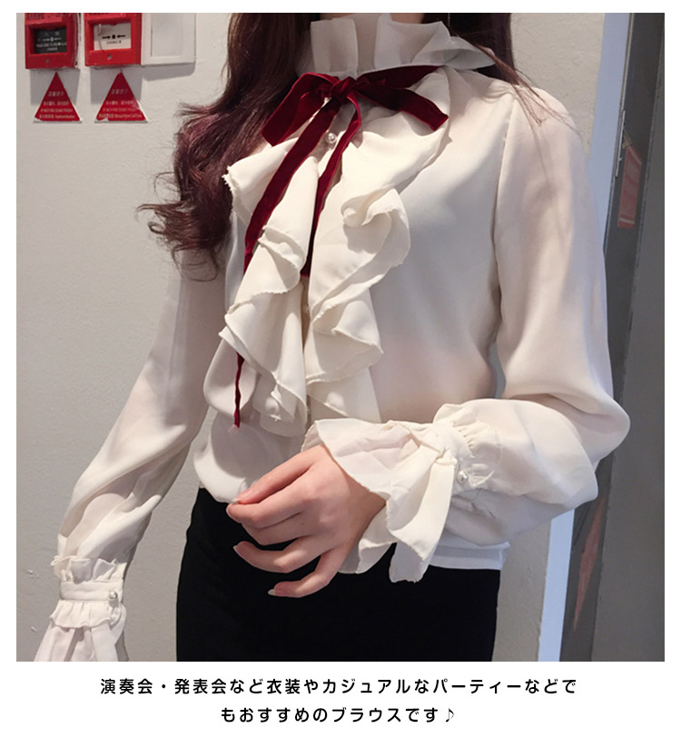 | 上品なリボンと立ち襟フリルブラウスが誕生しました!シンプルなデザインなのでスカートやパンツとの相性も抜群です!さらりとした素材感で着心地も良く、きれいめな印象を与えてくれます。季節によっては、上にジャケットを羽織ったり、1枚で決めたりと、オールシーズン使えます。演奏会・発表会など衣装やカジュアルなパーティーなどでもおすすめのブラウスです♪ | |
