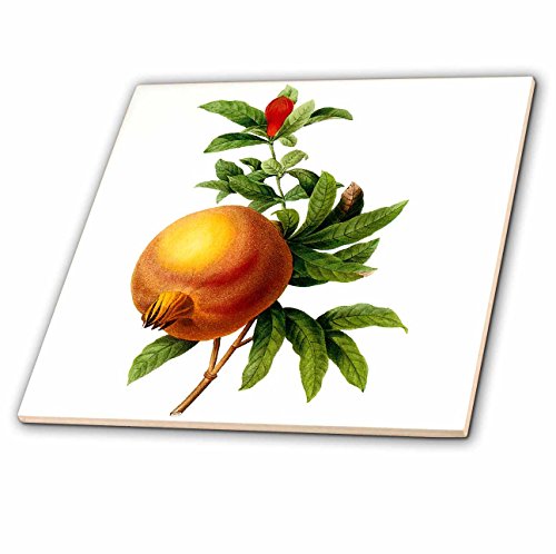 3dRose ct_106860_4 Redoute Vintage Watercolor Fruit Pomegranate Grenadier Punica-Ceramic Tile, 12-Inch