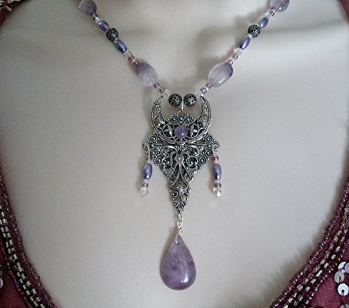 -. Title : Amethyst Cresent Moon Necklace, handmade jewelry, wiccan, pagan, wicca, witch, witchcraft, magic, metaphysical, goddess