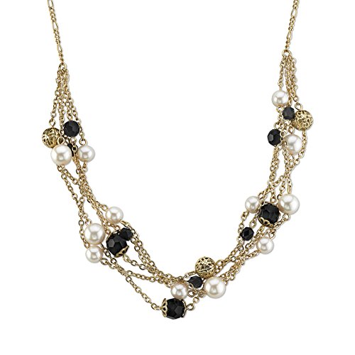 1928 Jewelry "Black and White" Gold-Tone Jet and Simulated Pearl Chain Necklace, 17"
