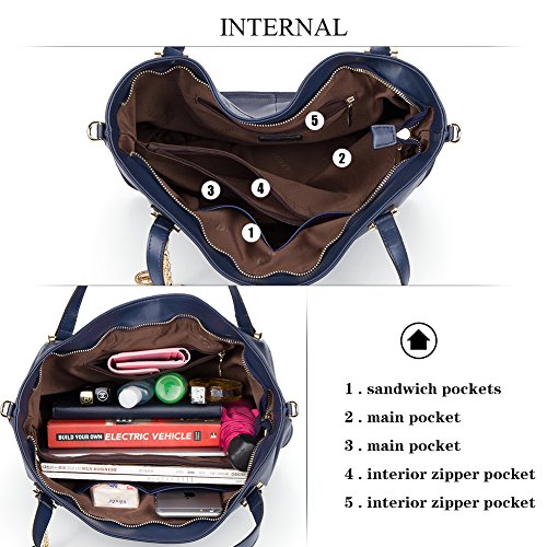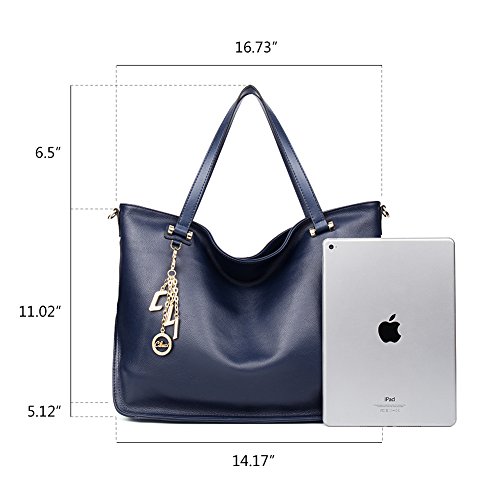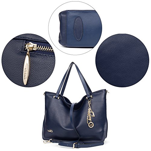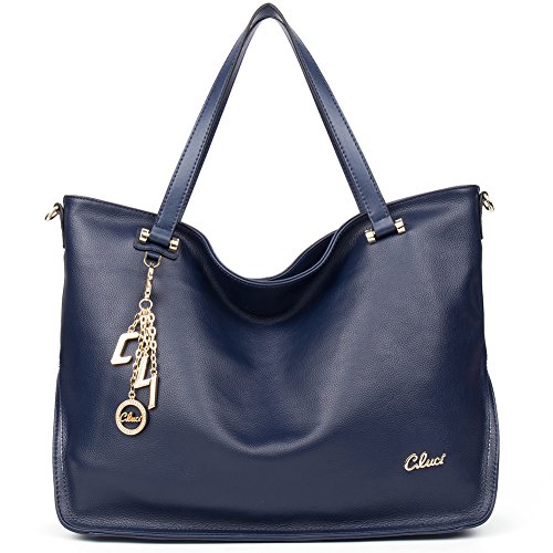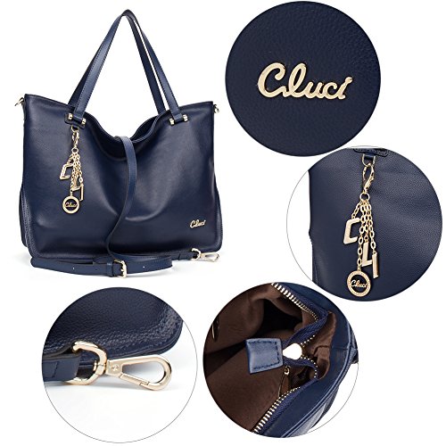 -. Title : Cluci Genuine Leather Handbags Purse Tote Cross-body Shoulder Bags for Women Navy Blue