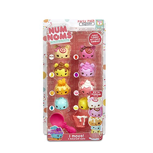 Series 1: Ice Cream and Cupcake 6 scented Nums in a variety of flavors - lemon, orange, cherry, blueberry, mint and chocolate 2 scented motorized Noms flavored raspberry and caramel Includes collector's menu, ice cream cone, and spoon to scoop 'em up 1,000+ mix & match combos! Sample them all! Ages: 3+ yearsFeature