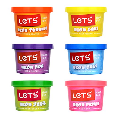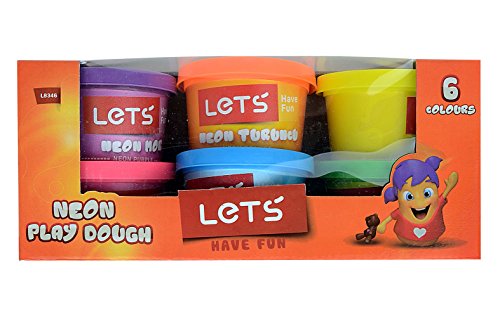 Let's Natural Play Dough 6 Neon Color Set For Kids NATURAL INGREDIENTS - play dough is made from wheat flour and is colored with all natural Pigments. No unnecessary chemicals are added to either the dough or packaging that is harmful to human health. GREAT STARTER PLAYSET - receive 6 different neon colors to fuel the imagination. TOTAL OF 21 oz OF PLAY DOUGH - each jar of play dough weighs 3.5 oz, giving you a total of 21 oz of play dough to spark your creativity! EASY CLEAN UP - cleaning is as easy as wiping your surface down with a damp cloth. NOT SUITABLE FOR CHILDREN UNDER 3 YEARS OLD - due to the tearing and potential of swallowing small pieces of dough, it is not recommended for children under 3. Fuel your child's creativity. This 6 neon color play dough set is perfect for children (and adults!) who want to play and sculpt. The clay is very soft and easy to mold. This set includes 6 neon colors, 1 each of the following: neon purple, neon orange, neon green, neon blue, neon yellow, and neon pink. Each jar of play dough weighs 3.5 oz, giving you a total of 21 oz of play dough to spark your creativity! Purchase as a gift or add to your collection. Finished projects can be air dried to put on display. Non-toxic - natural ingredients. Rest easy knowing that Let's Have Fun Play Dough is made from all natural, non-toxic ingredients. To ensure the human health safety, all Let's Have Fun Play Dough is manufactured from wheat flour. The bold, fun colors are made from natural pigments. Hypoallergenic, dermatologically-tested, and paraben-free! Dough is not gluten-free. No unnecessary chemicals are added to either the dough or packaging that is harmful to human health. Instructions: If play dough is left open, it may dry within 3-4 hours (depending on humidity and temperature of environment). Store dough in closed container after playFeature