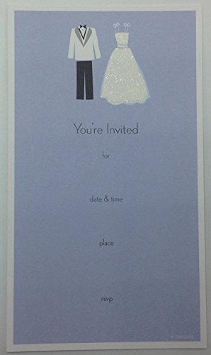 - A glitter embellished wedding gown and white jacket tuxedo are the feature of these fill-in invitations