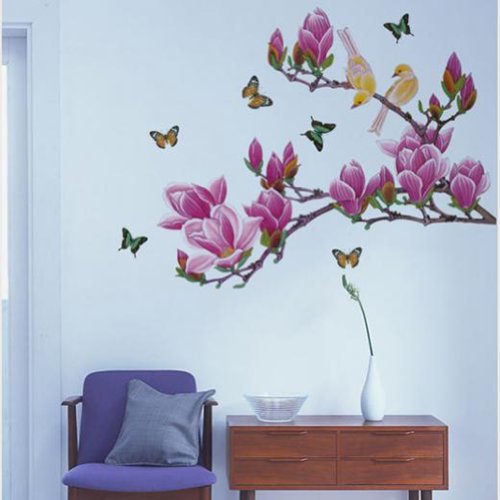 - Title : 60*90CM Mangnolia Flowers Butterfly Mural Wall Sticker Decals Art Home Decor