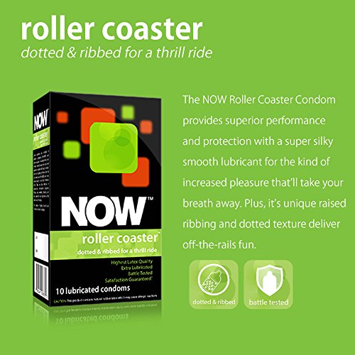 ReleaseDate : 2015-04-24 Studio : NOW Publisher : NOW Binding : Health and Beauty Product Description Our NOW roller coaster condoms provide superior performance with a super silky smooth lubricant for increased pleasure. NOW roller coaster condoms are produced with a unique raised ribbing and dotted texture for the extra fun, while still providing the utmost in protection and performance. Get on board and prepare for a thrill ride, with NOW roller coaster condoms. 0