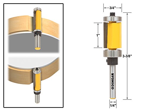 Yonico 14983 Flush Trim Router Bit Top & Bottom Bearing - 1" H 1/4" Shank
