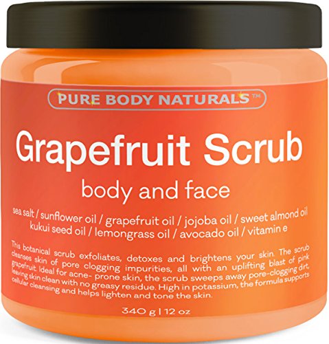 -. Feature : Natural Face Scrub for a Deep Clean: Clear skin starts with clean pores! Our pink grapefruit scrub helps you conquer acne and breakouts thanks to the cleansing powers of Jojoba Oil and Sea Salt. The oil penetrates deep to remove the excess dirt and toxins that can clog skin and cause pimples, while the salt provides a gentle exfoliation. In addition to buffing away dead skin cells, it also boosts blood circulation, revealing a healthier-looking complexion with regular use. / Smoother, Brighter Complexion: Grapefruit Oil helps make this our best face scrub yet! Loaded with antioxidants and Vitamins A and C, it boosts collagen production and reduces age spots for a firmer, softer complexion. Almond Oil also offers anti-aging benefits by fading dark under eye circles and reducing inflammation. And to give you unbelievably supple skin, we made sure to include the soothing properties of Kukui Oil for a creamy-textured blend. / Protect Your Skin with Our Exfoliating Scrub: Our expert formula does more than just rejuvenate your face! It also works as an effective body scrubber, tackling common problems like back-acne and dry skin. And because it includes Lemongrass, Avocado Oil, and Sunflower Oil, it even works to protect your skin. Together they accelerate healing, strength skin cells, defend against bacteria, fight free radicals, and help prevent sun damage. / Spa Quality Body Scrubs: After a long day, nothing beats a little indulgence and in-home pampering. Our luxurious scrub allows you to transform your bathroom into a P.R.Ivate spa! Step into a warm shower, relax, and allow the soothing apple aroma to melt away your stress. The great thing about our body exfoliator is that it's crafted with natural ingredients. Salts and oils spoil your skin without the use of artificial chemicals and fillers that can cause harsh side effects. / Love It or Your Money Back: Pure Body Naturals is always developing safe, effective products that will help you look and feel your best! We stand by our formulas, but if this isn't the best facial scrub you've ever tried, you can return it for a full refund. We make your satisfaction our top P.R.Iority and our customer service team is standing by to handle your questions. Our money back guarantee allows you to shop risk free, so why not try it today?