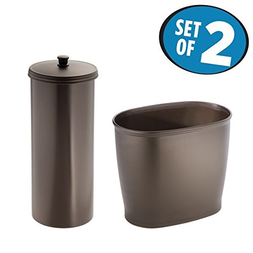 mDesign Bathroom Storage Accessory Set, Wastebasket Trash Can, Toilet Paper Holder with Lid - Set of 2, Bronze