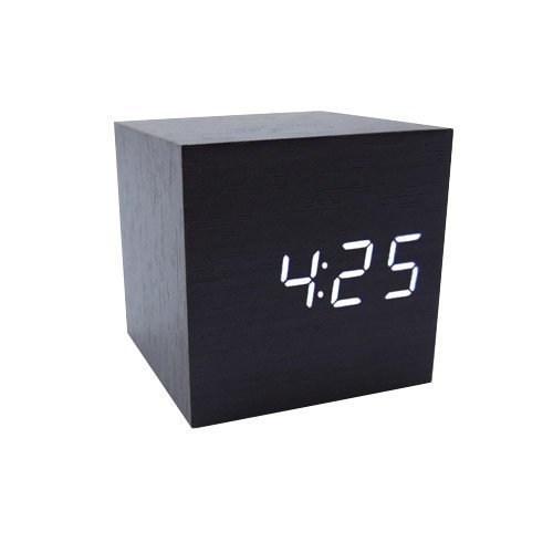 -. Title : 目覚まし時計 JUNCHI LED 木製時計 音声感知 アラームクロック 温度計多機能 置き時計 USB電源 デジタル時計(黒+白字)