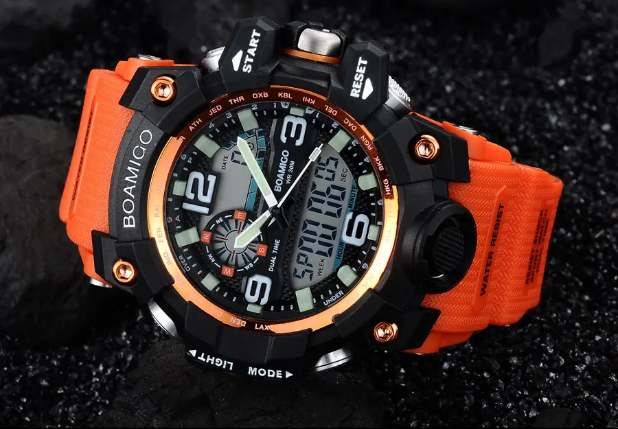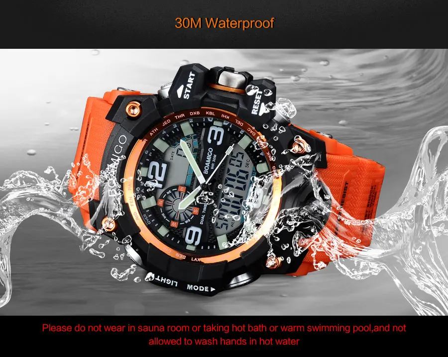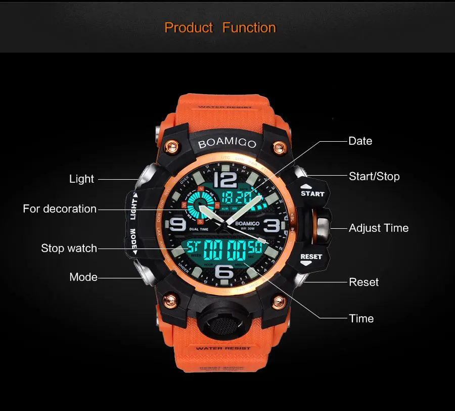 Feature:Stop Watch,Shock Resistant,LED display,Luminous,Auto Date,Complete Calendar,Multiple Time Zone,Perpetual Calendar,Water Resistant,Alarm,Swim,Week Display