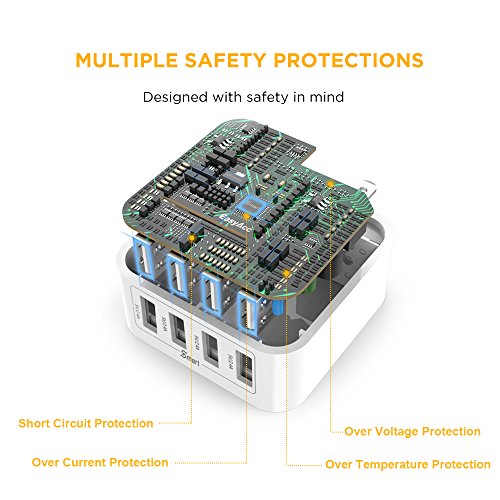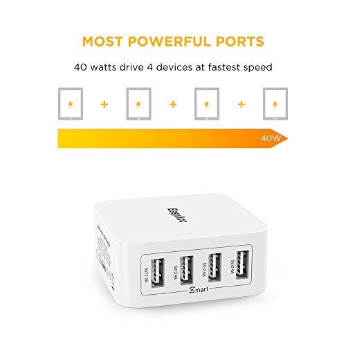 Most Powerful for All 4: At 40 watts, the charger is fully capable of charging 4 most power-demanding devices (8A in total) at full speeds, and at the same time.