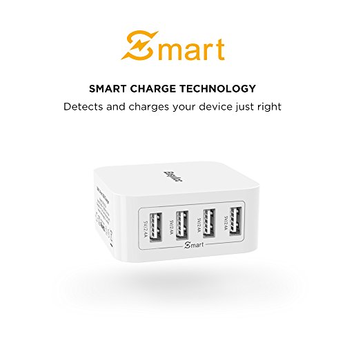 Smart Charge Technology: Each port is equipped with a smart chip, and outputs an exact current your devices require (up to 2.4A). The technology applies to almost 5V USB devices you may have.