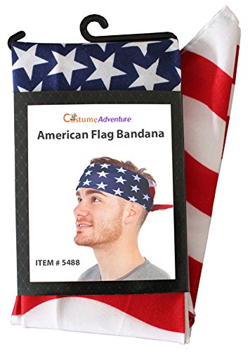 -. Feature : Support Team USA this summer with this quality American Flag Bandana! One American Flag Bandana, USA Bandana. / Measures 22 x 22 inches when laid flat. Great for any USA event like July 4th, Memorial Day, Veterans Day, Etc. / Made of a poly-cotton blend for a comfortable fit. / Comes packaged in protective Poly-bag packaging / Sold and Distributed by Costume Adventure, Inc. ®