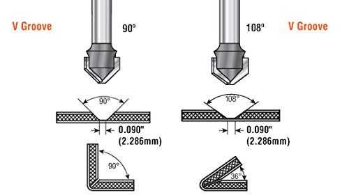 Amana Tool 45795 V-Groove 108 Deg. Folding for Aluminum Composite Material (ACM) Panels Like Alucobond, Dibond, 0.090 Tip Cut Width x 3/8 CH x 1/2 D x 1/4 Inch SHK Carbide Tipped Router Bit
