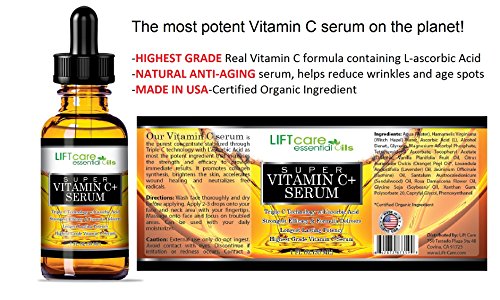 -. Binding : Misc. -. Brand : Lift Care -. EAN : 0642872873612 -. Feature : STOP USING USELESS VITAMIN C DERIVATIVES & give the purest form of vitamin C a go! Unlike our competitors who use mild & ineffective derivatives, we use highly effective & precisely synthesized form of vitamin C - that is L Ascorbic Acid (LAA)! It's bioactive & offers you full benefits of vitamin C without a compromise! / Apply a small amount of vitamin C serum to face, lightly massage with fingertips in circular motion until absorbed. Use twice a day for a soft and radiant appearance / Made in the USA With The Highest Quality Ingredients Available; Vitamin c serum does not contain alcohol, parabens or sulfates and is safe for all skin types. / Look Younger without using bunch of Makeup: Vitamin C Serum is a high potency serum for use on facial areas. / Purchase with complete peace of mind, we are confident we have developed the absolute best and stable Vitamin C Serum available in the market -. IsAdultProduct : 0 -. Label : Lift Care -. Manufacturer : Lift Care -. MPN : A406 -. PartNumber : A406 -. ProductGroup : Beauty -. ProductTypeName : BEAUTY -. Publisher : Lift Care -. Studio : Lift Care -. Title : "ONE DAY SALE" Super Vitamin C Serum L Ascorbic Acid 30ml Real Vitamin C Professional Grade-Anti Wrinkle and Lift -. UPC : 642872873612