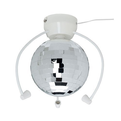 Lights up your child's room and transforms it into a disco, with a unique atmosphere for fun birthday parties. Uses LEDs, which consume up to 85% less energy and last 20 times longer than incandescent bulbs. Three colored gooseneck spotlights change colors automatically as the disco ball rotates and reflects light onto the walls. The long cord allows you to choose to mount the disco ball in the ceiling at the center of the room or at a side.This product is decorative lighting and is not intended to stand on a table or on the floor. Recommended for children 8 years and older.